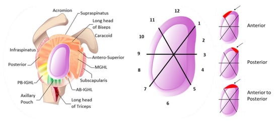 - Modarresi, S.; Motamedi, D.; Jude, C.M. Superior Labral Anteroposterior Lesions of the Shoulder: Part 1, Anatomy and Anatomic Variants. Am. J. Roentgenol. 2011, 197, 596–603. [Google Scholar] [CrossRef]