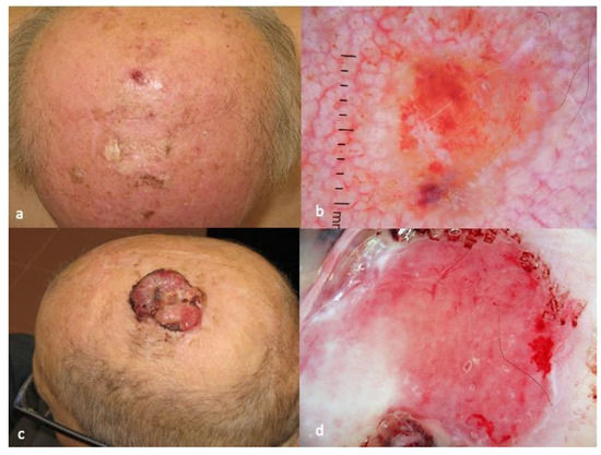 - Hartmann, F.; Haenssle, H.A.; Seitz, C.S.; Kretschmer, L.; Schön, M.P.; Buhl, T. Maculonodular lesion on the back of a 66-year-old man. Hautarzt 2016, 67, 845–847. [Google Scholar] [CrossRef]