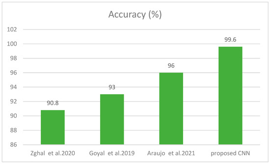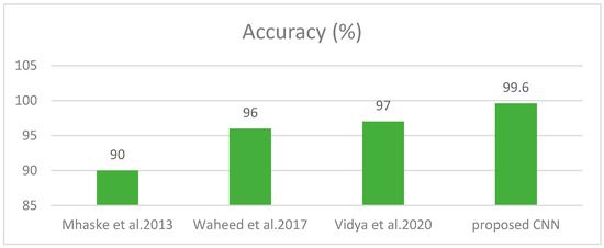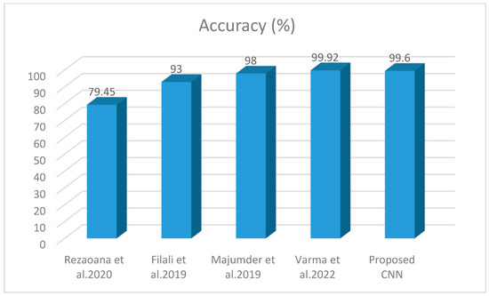 All correct predictions provided by the proposed CNN model reflect the accuracy. The number of predictions that are correct divided by the total number of predictions provides the accuracy.