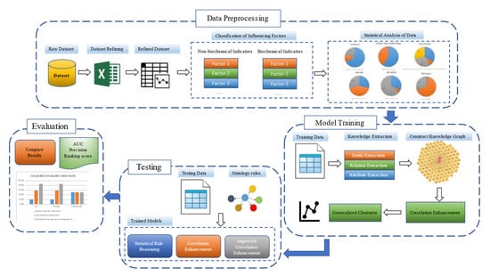 On this basis, the correlation enhancement algorithm was applied to refine the weight attributes of the connecting edges in the knowledge graph. In addition, the generalized closeness method was utilized to enhance the disease prediction model, enabling the classification of influencing factors among different target populations. Ultimately, expert suggestions informed by clinical practice were provided based on the obtained results.