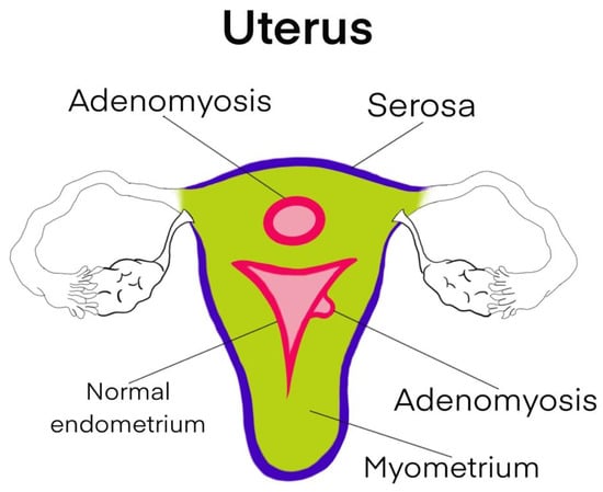 - Szubert, M.; Kozirog, E.; Wilczynski, J. Adenomyosis as a Risk Factor for Myometrial or Endometrial Neoplasms-Review. Int. J. Environ. Res. Public Health 2022, 19, 2294. [Google Scholar] [CrossRef]