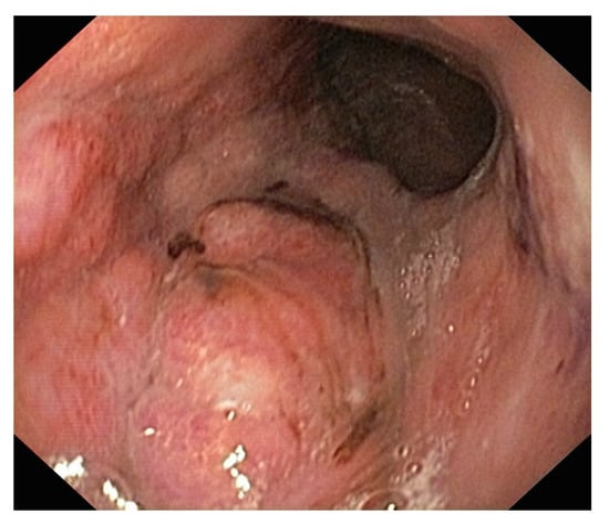 Endoscopic evaluation is essential to the diagnosis of gastric cancer (Figure 3). Essential for the endoscopic evaluation is the type of indication: elective or emergency, which affects the preparation of the pregnant woman, requiring specific steps to minimize risks. Upper digestive bleeding, especially in its severe forms, requires endoscopy and often concomitant therapeutic interventions. Some rules are mandatory: NPO 6–7 h before the investigation, the mother’s left lateral decubitus position during endoscopy for optimal uterine and fetal perfusion, nasogastric tube, the administration of oxygen to the pregnant woman and oximetry, blood pressure control, cardiac fetal activity monitoring, and a peripheral venous line [47]. Teratogenic or abortion risks are small and usually encountered in the first trimester. Administered medication should be limited as much as possible. If necessary, sedation should be performed with meperidine or fentanyl and not with diazepam/midazolam due to the minimal effect on the fetus [48].