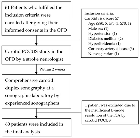 Flowchart of patient enrollment. OPD, outpatient department; POCUS, point-of-care ultrasound. ICA, internal carotid artery.
