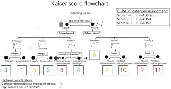 - Baltzer, P.A.T.; Krug, K.B.; Dietzel, M. Evidence-Based and Structured Diagnosis in Breast MRI using the Kaiser Score. RöFo Fortschr. Auf Dem Geb. Röntgenstrahlen Bildgeb. Verfahr. 2022, 194, 1216–1228. [Google Scholar] [CrossRef] [PubMed]