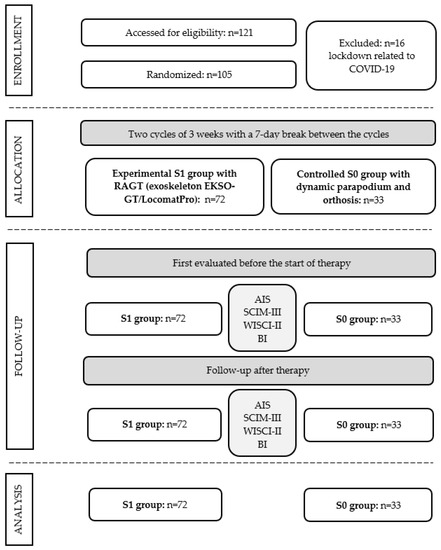 - Fang, C.Y.; Tsai, J.L.; Li, G.S.; Lien, A.S.; Chang, Y.J. Effects of Robot-Assisted Gait Training in Individuals with Spinal Cord Injury: A Meta-analysis. BioMed Res. Int. 2020, 2020, 2102785. [Google Scholar] [CrossRef] [PubMed]
