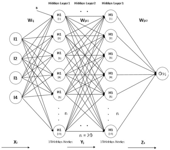 Within this particular context, the neural network’s neuron within layer is depicted as the parameters and . Meanwhile, the summation over j encompasses all dimensions of the input. The rectified linear unit (ReLU) is selected as the activation function and represented as . It is worth noting that is calculated as the maximum of 0 and a.