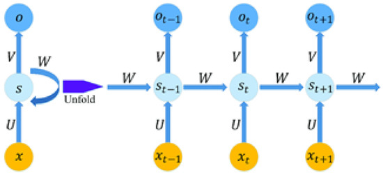 After the feature extraction from the image, the numerical/text data of the diabetes dataset are obtained using recurrent neural networks (RNNs). RNNs are similar to fully connected neural networks but with some of their layers refactored into a loop, as illustrated in Figure 3. There are two inputs to this loop, which is iteratively added or concatenated, and a matrix multiplication and non-linear function are applied.