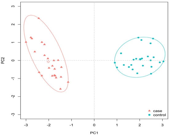 The observed numeric values were summarized by the mean and standard deviation (SD), and the categorical values were summarized by frequencies and percentages. To allow an easier comparison with the literature, the complete descriptive statistics are reported in the Supplementary Material. The correlation between the numeric variables was computed by means of Spearman’s correlation coefficient, . The difference in the means between the cases and controls was assessed by means of Welch’s t-type test. The dependencies between the categorical variables were assessed with Fisher’s test or the Chi-squared test.