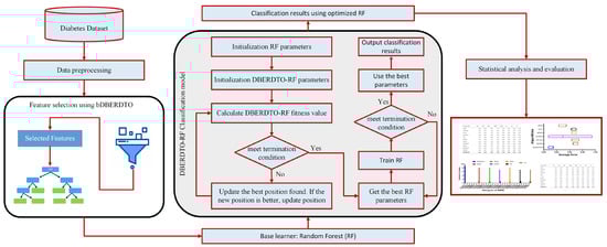 - A new optimization algorithm (DBERDTO) is proposed to optimize the parameters of the random forest classifier to boost the classification accuracy;