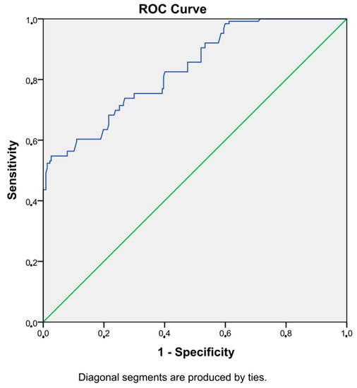 An SII value higher than 336 showed DKI with 75% sensitivity and 70% specificity (AUC = 0.83, p < 0.001, 95% CI = 0.79–0.88). Figure 1 shows the ROC curve of SII.