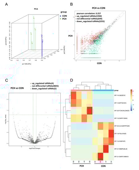 The results from hierarchical clustering shown by heat map revealed the differences in the tsRNAs expression profiles among the samples. Compared with the control group, the expression of nine tsRNAs in the PCH group was significantly dysregulated (Figure 2D).