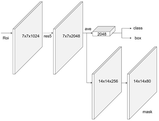 Two basic models were used within the scope of the study. The first of these is Mask R-CNN. Mask R-CNN, a state-of-the-art object detection and segmentation model, was used in this study. This model outputs the class labels, the bounding box of the object, and the object mask. This model uses ResNet-101 as ConvNet for feature extraction and also uses the regional proposal network (RPN) for RoI generation while detecting the candidate bounding boxes. The Mask R-CNN method is the extended version of the Faster R-CNN [31] and is given in Figure 3.