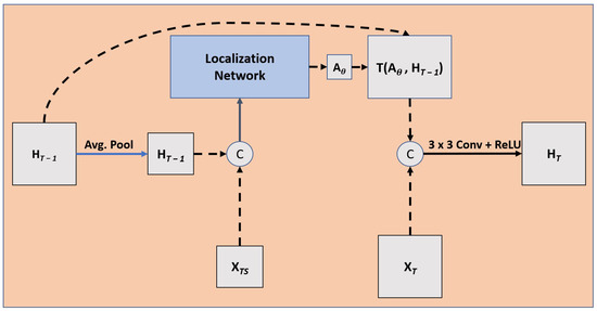 This module, while not explicitly optimized on a loss function to account for motion, allows for a transformation that can increase accuracy of the overall network. This is described in Figure 5, while the localization network is described in Figure 6.