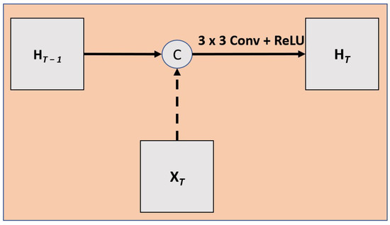 This shows the RC block, which is simpler than the SARC block, since it does not have the STN component, allowing for a spatial transformation of the hidden state. Instead, the RC U-Net only uses recurrent convolutions.