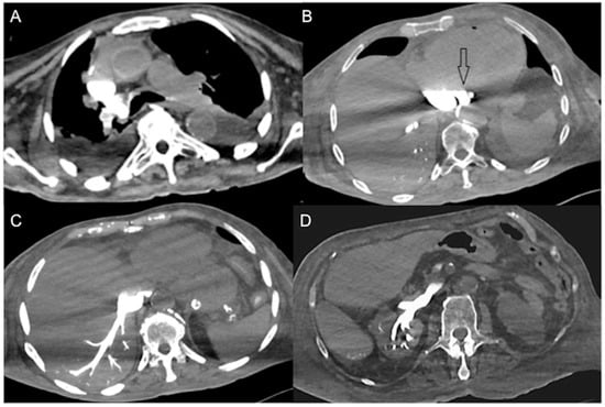 - Rotondo, A.; Catalano, O.; Grassi, R.; Scialpi, M.; Angelelli, G. Thoracic CT findings at Hypovolemic shock. Acta Radiol. 1998, 39, 400–404. [Google Scholar] [CrossRef] [PubMed]