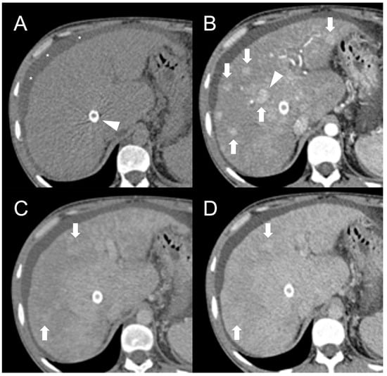 - Matsui, O.; Kadoya, M.; Kameyama, T.; Yoshikawa, J.; Takashima, T.; Nakanuma, Y.; Unoura, M.; Kobayashi, K.; Izumi, R.; Ida, M. Benign and Malignant Nodules in Cirrhotic Livers: Distinction Based on Blood Supply. Radiology 1991, 178, 493–497. [Google Scholar] [CrossRef]