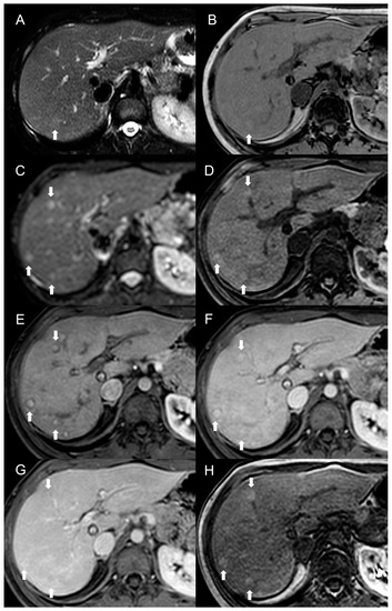- Colagrande, S.; Centi, N.; Galdiero, R.; Ragozzino, A. Transient Hepatic Intensity Differences: Part 2, Those Not Associated with Focal Lesions. Am. J. Roentgenol. 2007, 188, 160–166. [Google Scholar] [CrossRef] [PubMed]