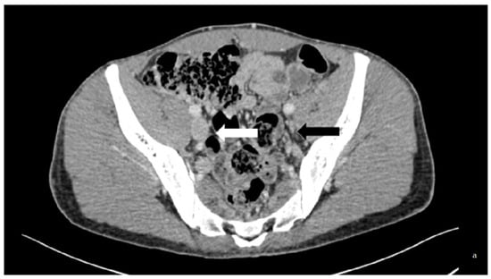 Case of a 33-year-old patient with thrombophilic disease whose first DVT was diagnosed in 2013. He displayed PTS. (a) is a transversal slice of a CT scanner that shows the baseline phleboscanner with a collapsed left external iliac vein (black arrow) compared to the collateral one (white arrow) confirmed on (b), which shows phlebography assessment in a posterior incidence (black arrow). The treatment consisted of an angioplasty/stenting of the iliofemoral vein by popliteal vein approach, the results of which are displayed on the digital subtraction angiography (c).