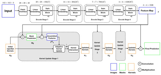- Zhang, W.; Pang, J.; Chen, K.; Loy, C.C. K-net: Towards unified image segmentation. In Proceedings of the Advances in Neural Information Processing Systems 34 (NeurIPS 2021), Online, 6–12 December 2021; Volume 34, pp. 10326–10338. [Google Scholar]