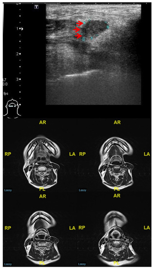 - Jiang, H.; Tan, Q.; He, F.; Yang, W.; Liu, J.; Zhou, F.; Zhang, M. Ultrasound in patients with treated head and neck carcinomas: A retrospective analysis for effectiveness of follow-up care. Medicine 2021, 100, e25496. [Google Scholar] [CrossRef]