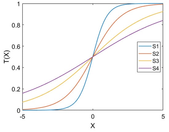 Figure 5. S-shaped TFs. The figure illustrates the curves of four distinct S-shaped transfer functions.
