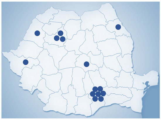 Geographic distribution of da Vinci robotic surgical systems in Romania (2023).