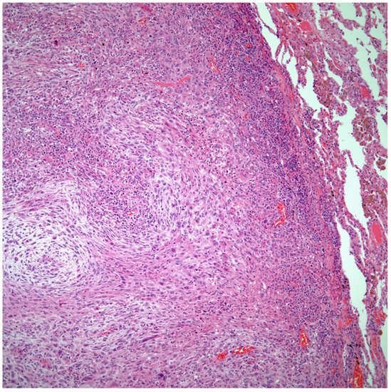 - Weissferdt, A.; Kalhor, N.; Rodrigues-Canales, J.; Fujimoto, J.; Wistuba, I.I.; Moran, C.A. Spindle cell and pleomorphic (“sarcomatoid”) carcinomas of the lung: An immunohistochemical analysis of 86 cases. Hum. Pathol. 2017, 59, 1–9. [Google Scholar] [CrossRef]