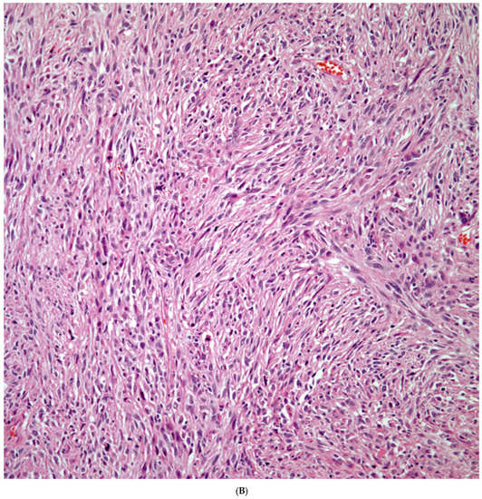 (A) Atypia and mitotic activity. (B) Neoplastic spindle cell proliferation.