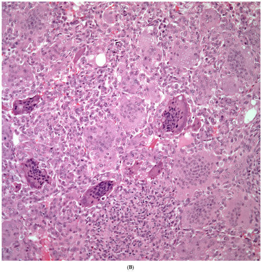 - Lichtiger, B.; Mackay, B.; Tessmer, C. Spindle cell variant of squamous carcinoma: Light and electron microscopic study of 13 cases. Cancer 1970, 26, 1311–1320. [Google Scholar] [CrossRef] [PubMed]