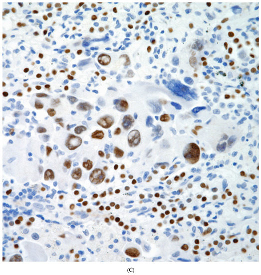 - Lindholm, K.E.; Kalhor, N.; Moran, C.A. Osteoclast-like giant cell-rich carcinomas of the lung: A clinicopathological, immunohistochemical, and molecular study of 3 cases. Hum. Pathol. 2019, 85, 168–173. [Google Scholar] [CrossRef] [PubMed]