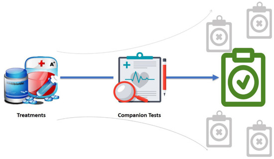 Companion diagnostics (CDx) is a biomarker assay linked to a specific drug. It is a drug–diagnostic codeveloped model defining the probable benefit of a drug with a molecular diagnostic assay [139]. The CDx assay is an imperative decision tool for pharmacotherapeutic intervention, and an incorrect result may lead to inappropriate treatment. The assays have an essential role in the drug development process, and the efficiency depends on the performance. On approval of a drug, molecular diagnostic assays are regarded as a companion to the drug, and, hence, named companion diagnostics. CDx is important both in drug development and individualized treatment (Figure 2).