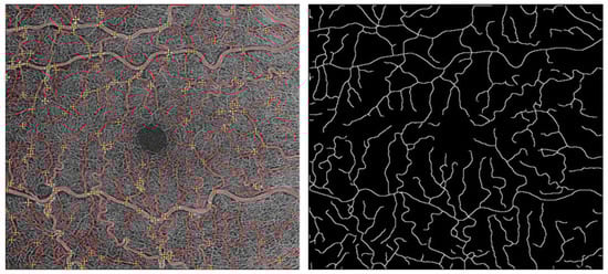 Acquired OCTA scans of the SCP were exported from the PlexElite Device in png format. Based on the detection method of Steger et al., ridge detection was used in Image J (National Institute of Health, Bethesda, MD, USA, Software Version 1.52p) to convert the images into a binary, skeletonized file [].