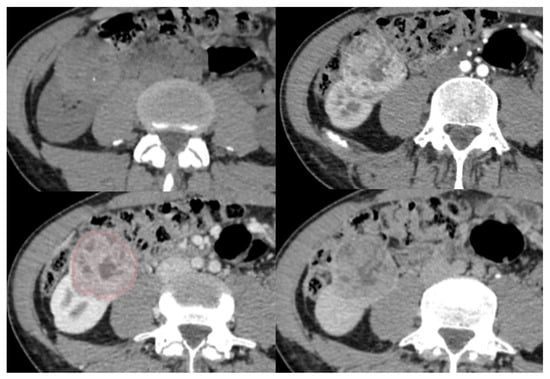 Renal cell carcinomas (RCCs) account for approximately 70% of all cases of renal cancer. The most common subtypes are clear-cell renal cell carcinoma (ccRCC), papillary renal cell carcinoma (pRCC) and chromophobe renal cell carcinoma (chRCC), accounting for 70%, 15% and 5% of all RCCs, respectively. As these subtypes have different natural histories and prognoses, it is crucial to differentiate them accurately. Moreover, some common benign tumors show a similar presentation to that of RCCs. Oncocytoma, a benign renal tumor accounting for 5% of all renal masses, is occasionally mistaken for RCC; oncocytomas account for 4–10% of all nephrectomy cases [1]. Furthermore, 5% of angiomyolipomas remain challenging to differentiate from RCC on CT due to their fat-poor nature. This may lead to unnecessary surgical treatment, raising concerns regarding morbidity.