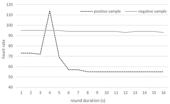 A typical continuous dog’s HR record during experiments including a positive sample or only negative samples.