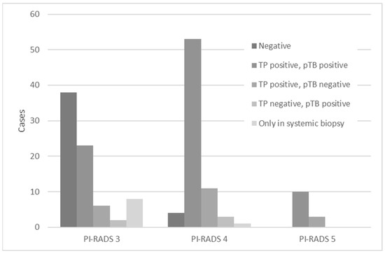 Regarding the PI-RADS, the combination of positive and negative results for TB and pTB, respectively, and the positive results for systemic biopsy, are shown separately. PI-RADS = Prostate Imaging Reporting and Data System; TB = targeted biopsy; pTB = perilesional targeted biopsy.