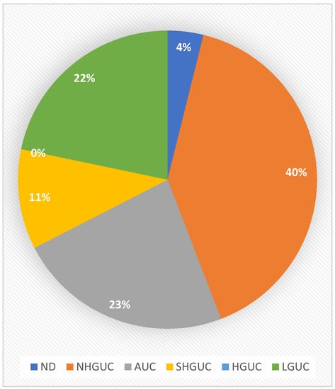 A separate category of “low-grade urothelial neoplasm” with its own diagnostic criteria was included in the first edition of TPS. In the second edition, this category was abolished and LGUN was incorporated in the “negative for high-grade urothelial carcinoma” diagnostic category [21]. This change is justified by past and recent studies in the literature [22,23]. However, there are a few institutions that still share a rather optimistic view about the competence of cytology in diagnosing LGUN and are thus opposed to this alteration. In our department, having dealt with urinary cytology specimens throughout the years, we adopted and have been using TPS since 2016. Nevertheless, we were skeptical about the aforementioned change. Thus, we searched our institution’s database and planned a study in order to investigate the validity of the incorporation of the “low-grade urothelial neoplasm” in the “negative for high-grade urothelial carcinoma” diagnostic category in the second edition of TPS, while also studying the accuracy parameters of the HGUC diagnosis.