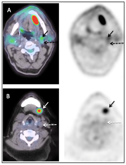 - Nakagawa, T.; Yamada, M.; Suzuki, Y. 18F-FDG uptake in reactive neck lymph nodes of oral cancer: Relationship to lymphoid follicles. J. Nucl. Med. 2008, 49, 1053–1059. [Google Scholar] [CrossRef]