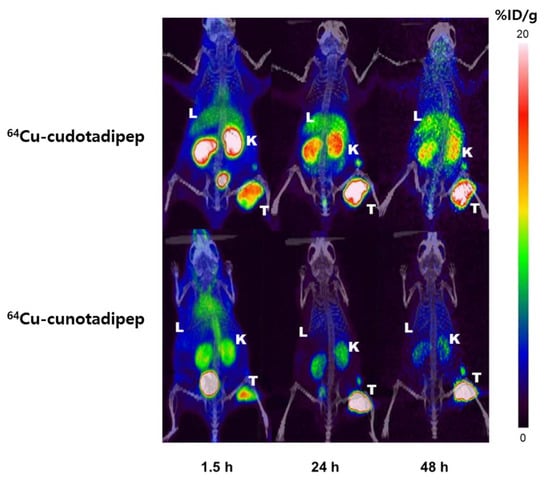 3.6. Radiation Dosimetry of 64Cu-Cudotadipep and 64Cu-Cunotadipep