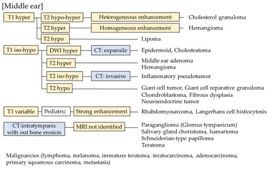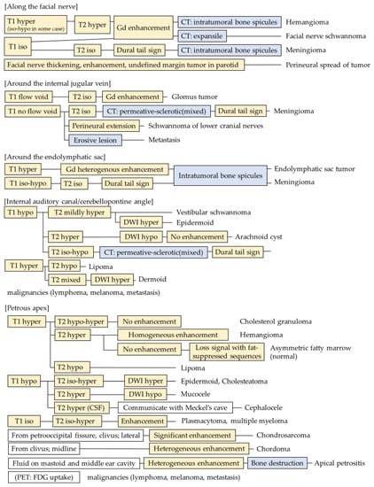 Campion et al. summarized the differential diagnoses of inflammatory lesions in the temporal bones of children [5]. This suggested that a similar flowchart for tumoral lesions and adult cases would be useful for diagnosis.