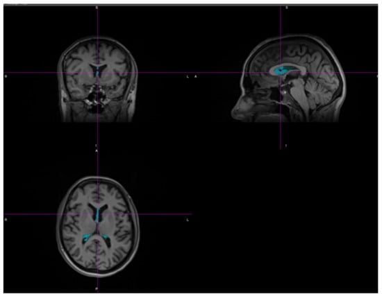 When comparing the volumes of choroid plexuses in the study groups, an optimal way was sought to make the result the most reliable and take into account individual patient variability. To this end, a comparison was made of the ratio: total choroid plexus volume/intracranial space volume at baseline and at the end of follow-up. The intracranial space volume was considered constant. Due to different follow-up times, the final volume was standardized to be the volume after one year of follow-up. A range of nonparametric tests was used for statistical analysis. Groups for volume differences at the same time points (independent comparisons) were compared using the U Mann–Whitney or Kruskall–Wallis tests. For dependent comparisons (assessment of volume changes over time), the sign test was used. Continuous variables were presented as means and standard deviations. p < 0.05 was taken as a statistically significant value.