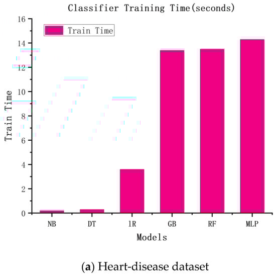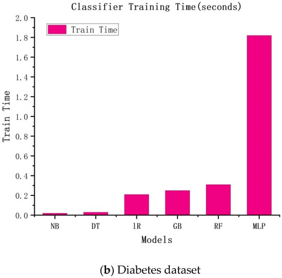 Similar to the accuracy of the above experiments, we speculated that the more complex the model, the higher the time cost would be. The experimental results are shown in Figure 3. According to the figure, the more complex the model, the longer the training time and the higher the training cost.
