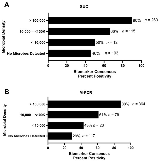 Elevated UTI Biomarkers in Symptomatic Patients with Urine Microbial Densities of 10,000 CFU/mL Indicate a Lower Threshold for Diagnosing UTIs