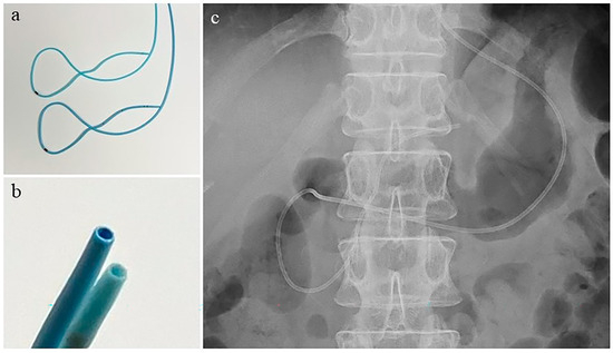 - Mouri, T.; Sasaki, T.; Serikawa, M.; Ishigaki, T.; Ishii, Y.; Shimizu, A.; Tsuboi, T.; Kurihara, K.; Tatsukawa, Y.; Miyaki, E.; et al. A comparison of 4-Fr with 5-Fr endoscopic nasopancreatic drainage catheters: A randomized, controlled trial. J. Gastroenterol. Hepatol. 2016, 31, 1783–1789. [Google Scholar] [CrossRef]