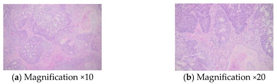 - Sasaki, E.; Yamagata, K.; Hagiwara, T.; Takasaki, R.; Fukuzawa, S.; Uchida, F.; Ishibashi-Kanno, N.; Bukawa, H. A Case of Primary Intraosseous Adenoid Cystic Carcinoma of the Mandible. Case Rep. Dent. 2023, 2023, 2422086. [Google Scholar] [CrossRef]