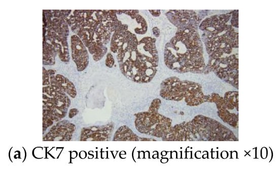 - Candanedo-Gonzalez, F.; Rodriguez-Orihuela, D.; Arista-Nasr, J. Macrofollicular variant of papillary thyroid carcinoma with metastasis to femur. Thyroid. Res. 2020, 13, 10. [Google Scholar] [CrossRef]