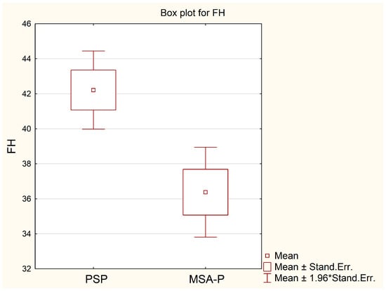 Comparison of mean values of FH in groups of patients with PSP and MSA-P. Stand. Err.—standard error.
