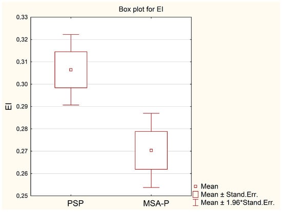 Comparison of mean values of EI in groups of patients with PSP and MSA-P. Stand. Err.—standard error.