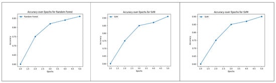 Figure 8. Accuracy over Epochs for Random Forest, Logistic Regression and SVM.
