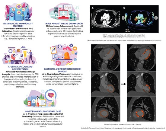 - Nicholls, M. AI Offers Advances in Cardiovascular Imaging. Healthcare in Europe. 2023. Available online: https://healthcare-in-europe.com/en/news/ai-offers-advances-in-cardiovascular-imaging.html (accessed on 24 May 2023).