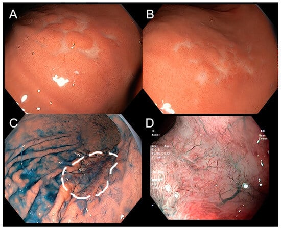 Primary gastrointestinal (GI) lymphomas are malignancies that originate from the lymphocytes of the GI tract. The digestive tract is the most frequent extranodal location of non-Hodgkin lymphomas. However, gastrointestinal lymphoma is a rare tumor, comprising only 10–15% of non-Hodgkin lymphomas and 1–4% of GI tumors [1,2,3]. Although this tumor can develop in any part of the digestive tract, the stomach is the most affected (in approximately 2/3 of the cases), followed by the small intestine and other areas. Diagnosis of gastrointestinal lymphoma is challenging. Endoscopic findings and histopathological analysis are indispensable for diagnosing and distinguishing malignant from benign lesions [1,4]. Specifically, the proportion of GI lymphomas initially detected by endoscopists is growing owing to the development of endoscopic technology. Owing to their nonspecific appearance during endoscopy, there is no universal classification standard at the macroscopic level. Various authors have proposed endoscopic classification schemes for GI lymphomas [3,5,6]. Due to the above non-specific endoscopic findings, histopathological examination is required for the diagnosis of GI lymphoma [3,7].